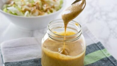 - Соединить цедру, лимонный сок, чеснок, мед, соевый соус, зерновую горчицу, растительное масло и рубленую зелень, все тщательно перемешать.