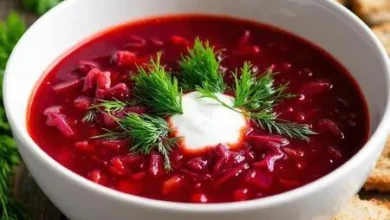 Разлейте борщ по тарелкам и подайте на стол. Насыщенный, аппетитный и сытный! Что может быть лучше, особенно с солёным салом, чёрным хлебом и зелёным лучком! Приятного аппетита!