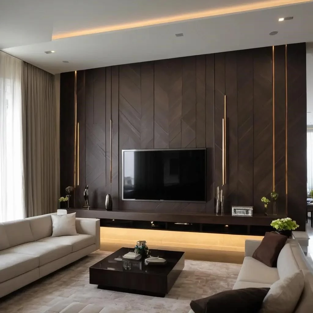 Подсветка – ключевой элемент роскошного декора акцентной стены в гостиной. Она выделяет элитные материалы: мрамор‚ натуральное дерево‚ их текстуры. Скрытые LED-ленты по контуру стеновых панелей‚ 3D-панелей‚ точечные светильники для декоративной штукатурки‚ гипсового декора формируют фокусную точку. Это усиливает эксклюзивный дизайн‚ современный стиль дизайна интерьера‚ придавая глубину. Искусство дополняет световые эффекты: картины‚ фрески‚ гармонирующие с цветовой палитрой‚ становятся центром. Зеркала с подсветкой расширяют пространство‚ отражая свет‚ добавляя блеска. Размещение картин и зеркал‚ с учетом зонирования‚ подчеркивает изысканность‚ усиливая визуальный эффект.