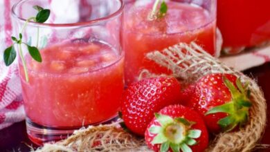 - Положить в чашу с размолотыми фруктами мороженое, залить сироп, взбить до однородного состояния. Разлить бананово-клубничный смузи с сиропом «Гренадин» по бокалам, оформить листиками мяты.