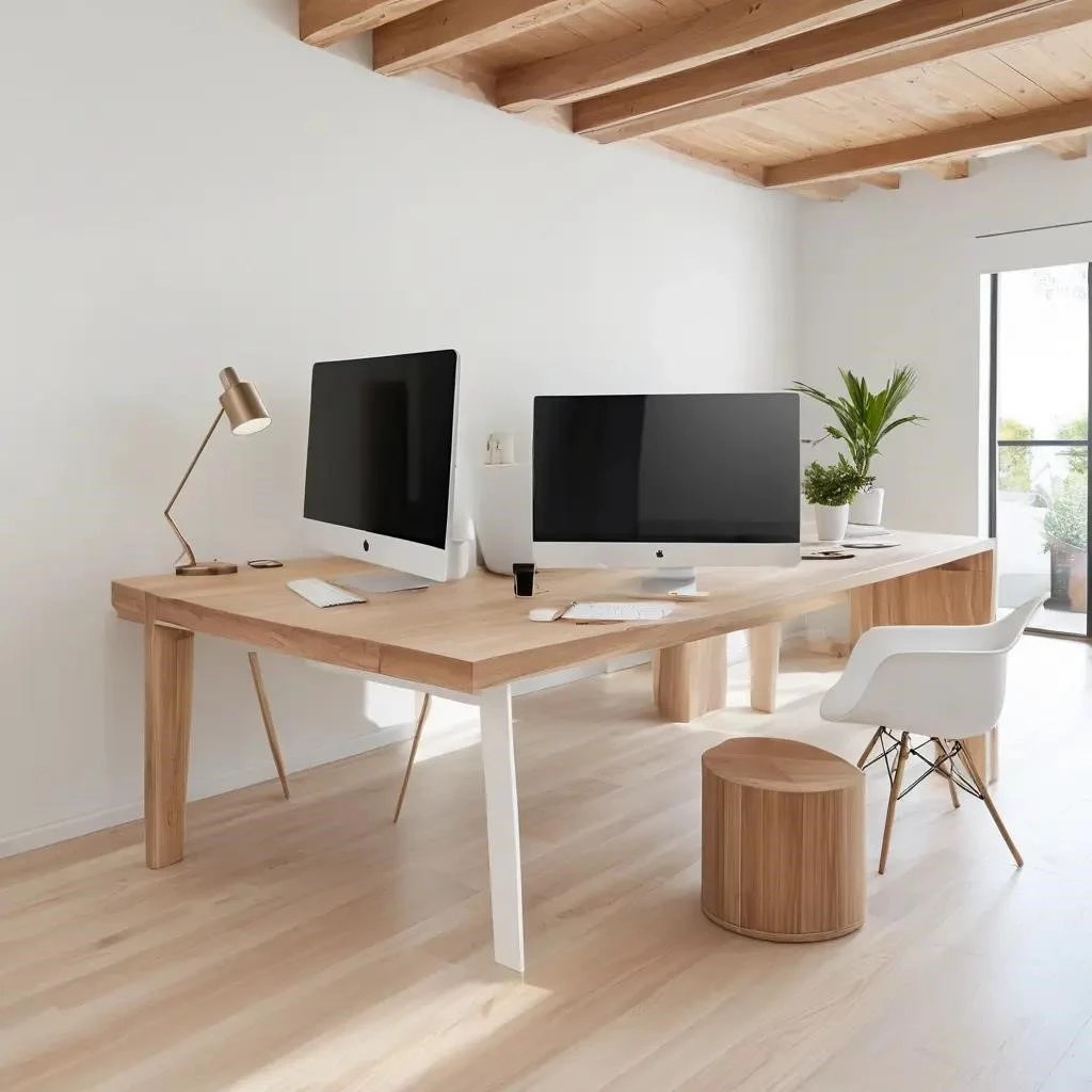 Для создания рабочей станции для двоих в домашнем офисе, первым шагом является выбор подходящей основы. Длинная столешница или тандемный стол – оптимальное решение для эффективного совместного рабочего пространства. Подобный общий стол, по сути, двойной стол, позволяет же максимально эффективно использовать площадь помещения. Он предлагает комфортное парное место для каждого пользователя. Планировка домашнего офиса требует тщательного учета габаритов комнаты. Размещение такой мебели для двоих вдоль одной из стен часто позволяет освободить центральную часть помещения. Это обеспечивает организацию пространства без перегрузки. В более просторных комнатах длинный стол можно разместить по центру. Такое расположение сделает его фокусным элементом интерьера, подчеркивая функциональность.