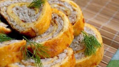 Закусочный яичный рулет, приготовленный по этому рецепту, не стыдно подать и на праздничный стол. Он получается сочным, ароматным и очень вкусным. Для начинки подойдет любая печенка. Важно не передержать её на огне, чтобы кусочки печени остались сочными. Тогда и начинка будет вкуснее, и яичный рулет при нарезке не будет рассыпаться.