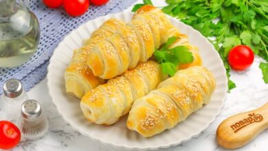 Аккуратно сверните пласты в плотные рулетики вдоль длинной стороны.