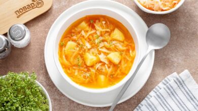 Когда перестанет образовываться пена, посолить по вкусу, положить горошины перца и лавровый лист. Из готового бульона выловить зелень, луковицу и морковь. Процедить мясной бульон в чистую кастрюлю, добавить мясо, отделенное от кости и вернуть кастрюлю на плиту на небольшой огонь.