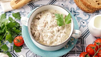 - Перед подачей всыпать лук-порей.