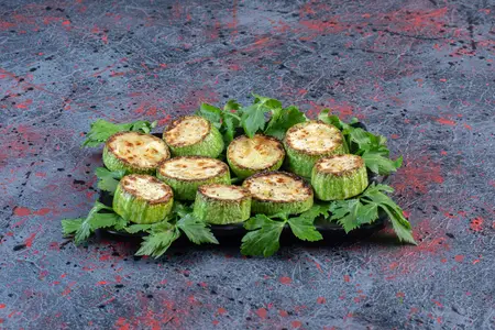 Герметично приготовленные кабачки на домашнем гриле с оливковым маслом, солью, перцем, орегано или тимьяном, чесноком и лимонным соком для вкусного…