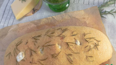 Осетинский пирог: рецепт с мукой пшеничной, теплой водой, сухими дрожжами, сахаром, солью, маслом, сыром осетинским или сулугуни, яйцом и молоком.