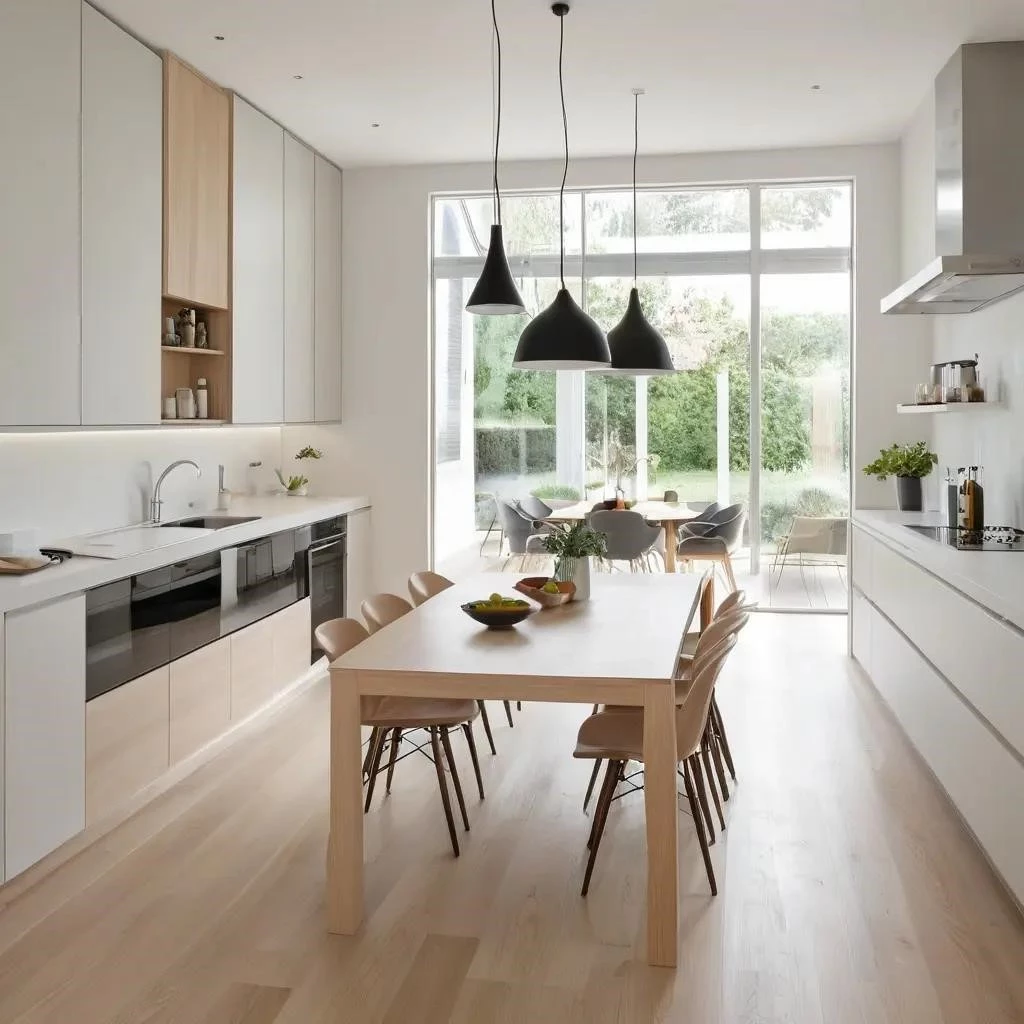 • Встроенная техника: создает единый фасад, улучшая эстетику.