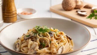 Паста карбонара с добавлением грибов