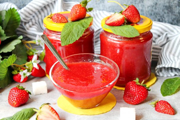 Описание приготовления: Клубнику для варенья нужно тщательно отобрать, так как время варки будет минимальным. Банки нужно подготовить и стерилизовать заранее…