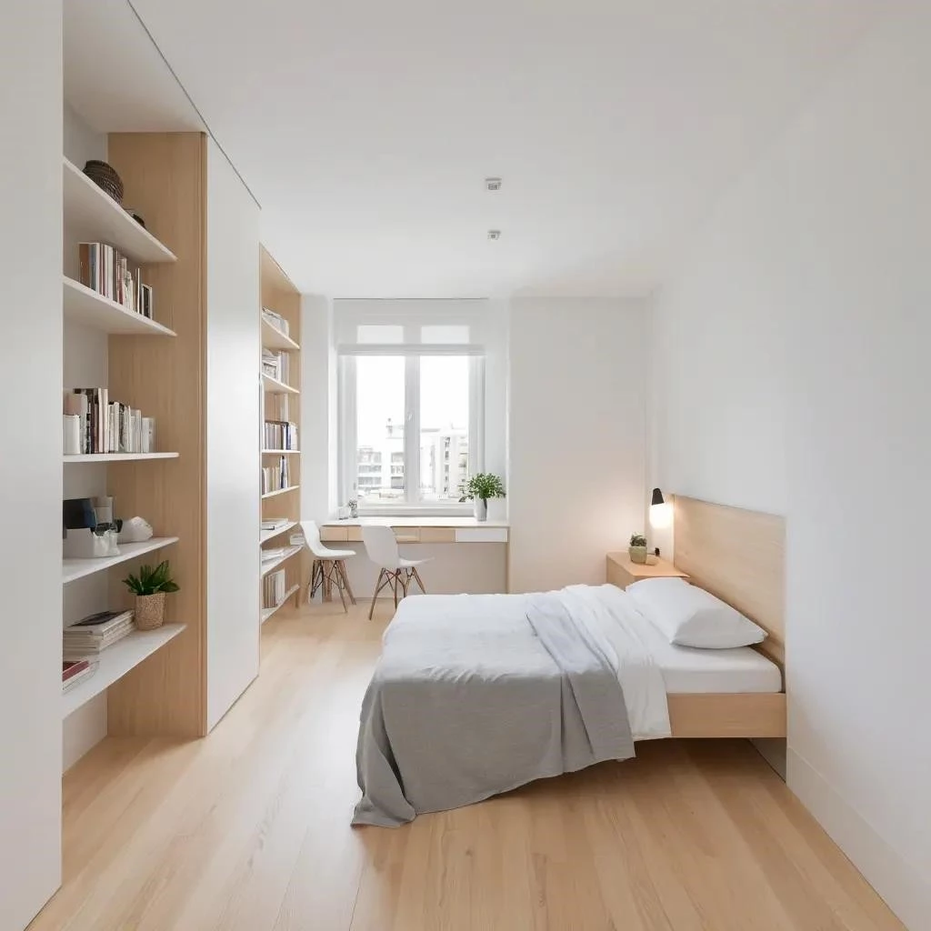 Системы хранения в узкой комнате — основа. Оптимизация пространства всегда необходима. Избежать загромождения поможет вертикальное хранение. Это создает уют в узкой комнате. Принцип эргономики узкого пространства для длинной комнаты интерьер.