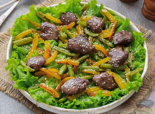 1 порция 20 мин (ваши 20 мин) Тёплый салат с жареной куриной печенью, стручковой фасолью и болгарским перцем несмотря на простоту…