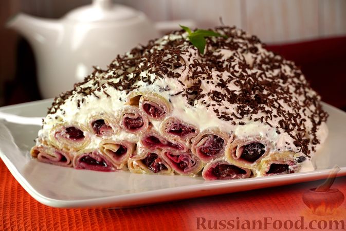 Молдавский блинный торт, в котором трубочки наполнены вишней и собраны в виде настоящей шапки Гугуцэ — доброго сказочного героя. Нежная…