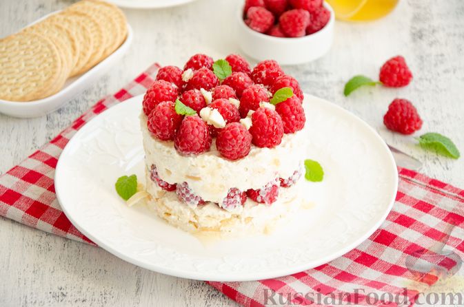 16.07.202590Десерт из творога, с малиной и печеньем
