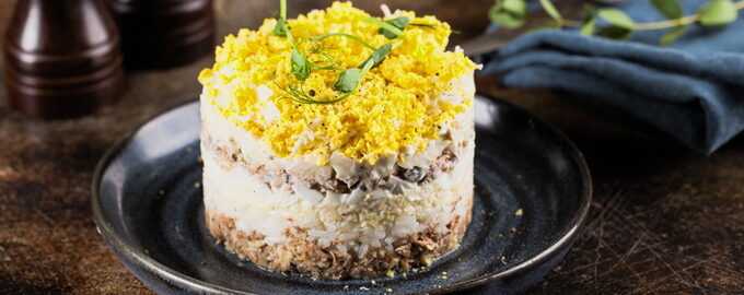 03.07.202597Классический салат Мимоза с рыбными консервами