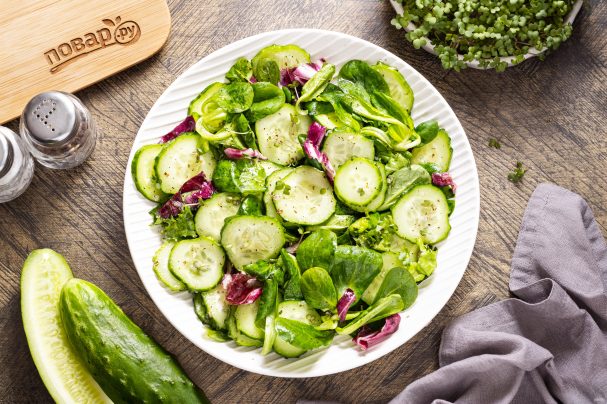 Описание приготовления: Ниже я расскажу подробнее, как приготовить салат из зелени и огурцов. Из зелени также можно использовать руколу, кейл,…