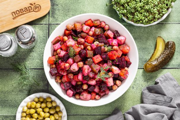 Описание приготовления: Ниже я расскажу подробнее, как приготовить салат "Винегрет". Из овощей также можно добавить квашеную капусту и лук (репчатый…