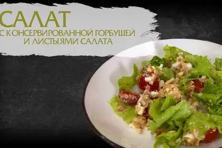 08.06.2025107Салат с консервированной горбушей и листьями салата