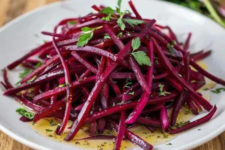 Вкусный салат из вареной свеклы с чесноком, оливковым маслом, лимонным соком, солью и перцем — полезное и ароматное блюдо для…