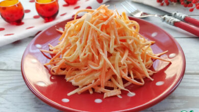 Рецепт легкого салата из кальмаров с корейской морковкой для тех, кто любит погорячее. Всё дело в салатной заправке. Её остроту и пряность можно регулировать по своему вкусу. И помните, что вареные кальмары очень хорошо впитывают соус, особенно, если вы добавите его, когда кальмары будут еще теплыми.