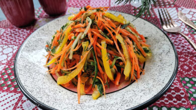 Плавленый сырок убрать в морозилку, пока подготавливаете остальные продукты для салата.