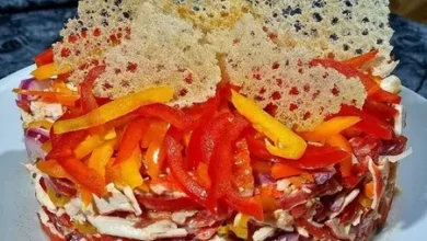 Перед подачей полить салат растительным маслом, аккуратно перемешать и переложить на сервировочное блюдо или в порционные салатники. Приятного аппетита!