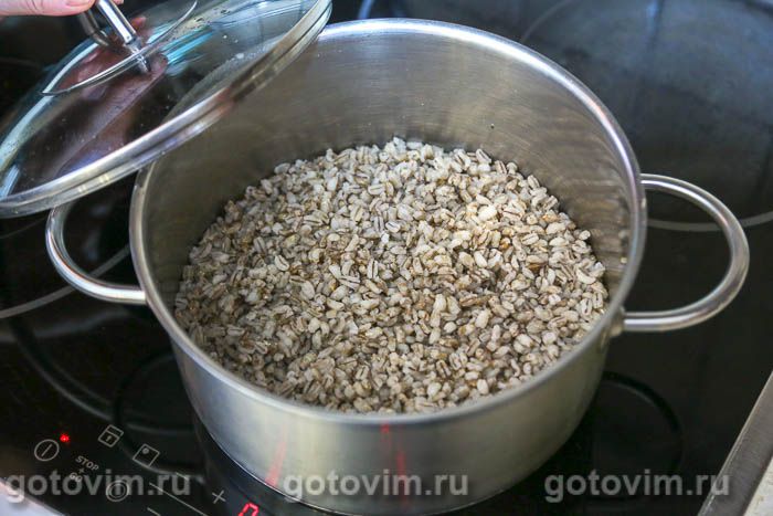 К этому времени перловка будет готова. Попробуйте зернышки, они должны быть кремовые на вкус.