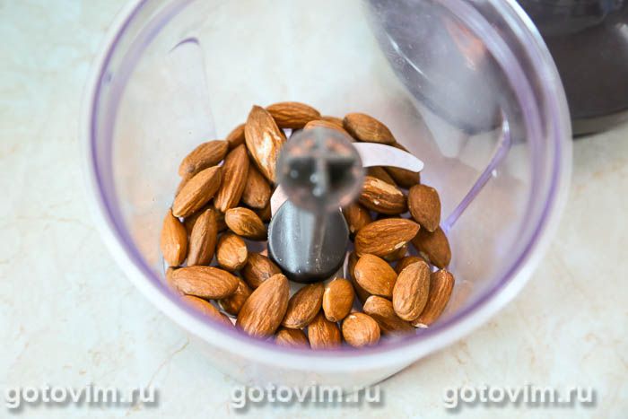 Орехи промыть в холодной проточной воде, обсушить на полотенце и обжарить на сухой (без масла) сковороде или в духовке. Конечно, можно взять готовые пакетированные жареные орехи, но я и их мою. Обжаренный миндаль порубить в крупную крошку.