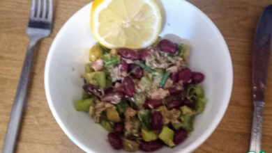 Украсить салат тонкими кружками соленых огурцов. Дать угощению настояться в холодильнике примерно 1 час. Слоеный салат с печенью трески можно подавать на стол. Приятного аппетита!