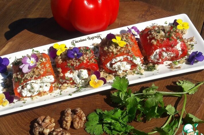 Яркая закуска с запеченным перцем и рассольным сыром — идеальное сочетание сладкого перца, соленого сыра и орешков. Ингредиенты для «Запеченные…