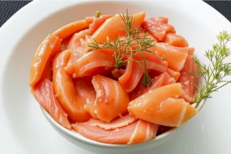 Насладитесь паштетом из сёмги и семгой слабосоленой, мягким творожным сыром, свежим огурцом, укропом, лимонным соком, перцем и солью для насыщенного…