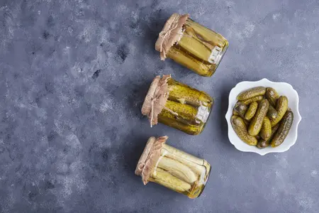 Консервированные соленые огурцы с чесноком, укропом, лавровым листом, перцем и специями. Свежие огурцы, вода, соль — вкусное блюдо без уксуса…