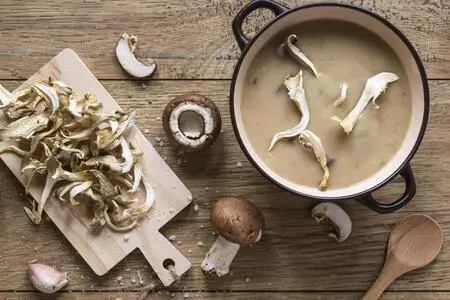 Рецепт морковь с грибами на зиму: свежая морковь, шампиньоны или другие грибы, лук, чеснок, специи, уксус, растительное масло и бульон…