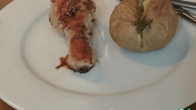 Противень застелить фольгой так, чтобы с двух сторон можно было приподнять края и завернуть над мясом с картофелем. Затем распределить по фольге свиные косточки.