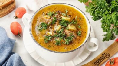 Затем добавьте томатное пюре и нарезанный кубиками чеснок. Готовьте ещё пару минут. Готовый суп с говядиной и картошкой снимите с плиты и дайте ему 10-15 минут настояться.