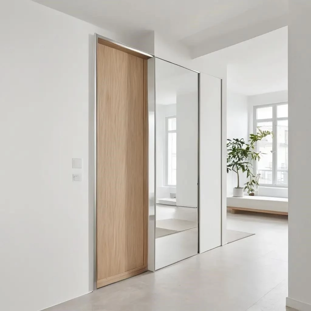 В узкой прихожей, где каждый сантиметр на счету, дизайн прихожей нацелен на визуальное расширение. Неглубокий шкаф-купе глубиной 40 см уже спасает пространство, но его внешний вид должен гармонично вписаться в маленький коридор. Цель — создать ощущение простора, минимизируя влияние мебели для прихожей на узкий проход. Эргономика требует функциональности и эстетики. Зеркальные двери — мощный инструмент. Они зрительно удваивают объем, делая интерьер светлее. Применение зеркальных дверей на всю высоту шкафа эффективно растворяет компактный шкаф в пространстве. Экономия места подкрепляется визуальным эффектом. Подсветка шкафа также играет роль. Встроенные LED-ленты или точечные светильники создают эффект парения, добавляя легкости.