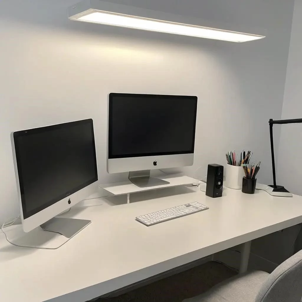 Освещение рабочего стола критично для здоровья глаз. Плохой световой поток вызывает утомляемость глаз‚ снижая продуктивность. Комфортное освещение в домашнем офисе необходимо для защиты глаз‚ снижения нагрузки на глаза‚ визуального комфорта. Регулировка яркости‚ цветовая температура‚ отсутствие мерцания‚ равномерное освещение‚ рассеянный свет‚ LED освещение (светодиодные лампы) желательны. Эргономика освещения: мониторная лампа лучше настольной лампы как светильник для компьютера. Дает оптимальное освещение‚ подсветку рабочего стола. Адаптивное освещение улучшит офисное освещение‚ сбережет зрение.