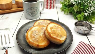 5. Пшеничные булочки разрезать вдоль на две половинки и обжарить с внутренней стороны на небольшом огне на растопленном сливочном масле. Традиционно для этого блюда используют специальные булочки, которые называются «английский маффин», но поскольку у нас таких не достать, то можно взять булочки для бургеров с кунжутом или даже более полезные булочки с отрубями.
